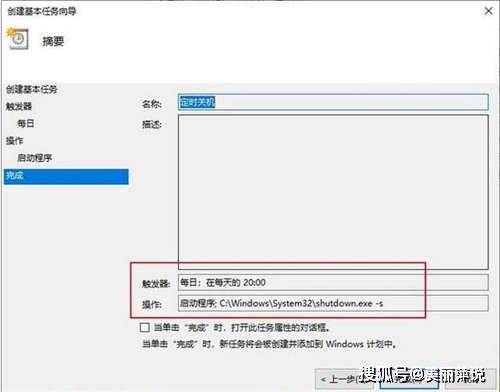 点击下一步,仔细核对,触发器,启动程序等数据!最后点击完成就设置完成了!