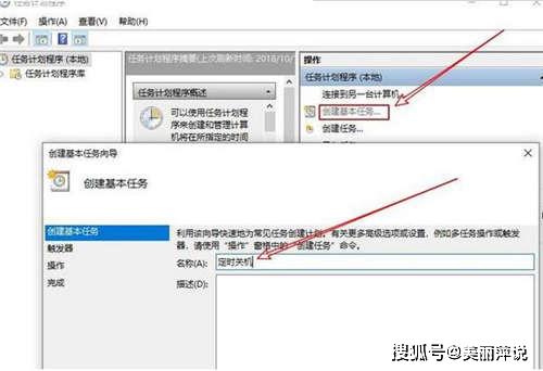 然后点击右边的“创建基本任务,然后在名称输入框后填写:定时关机,并点击下一步!