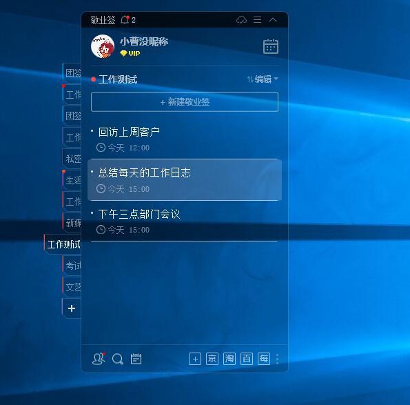 为了方便查看便签上记录的工作相关提醒,可以将敬业便签设置成窗口置顶,让便签一直保持在桌面的前端显示,实时查看便签上记录的工作相关内容,也可以将便签嵌入到电脑桌面上,返回电脑桌面即可查看便签内容。