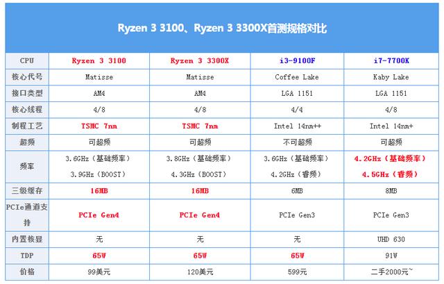 对消费者来说,这次的AMD 锐龙3 3100与锐龙3 3300X可以说是一代锐龙3 1200与1300X的正统继任者。获得了SMT的加持使得它成为了首款4核8线程的锐龙3处理器。(i7-7700K:这...)