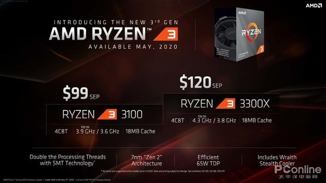 在Zen 2+(Zen 3)架构处理器即将推出的前夕,AMD似乎还想搞一波大事情,发布了AMD 锐龙3 3100与锐龙3 3300X处理器,均为4核8线规格。这两款产品并没有出现在三代锐龙首发时的列表清单。
