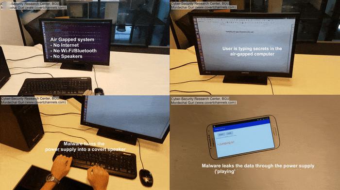 实际上,这类攻击事件并未真的发生,而是安全研究员们的一项研究课题。他们在一台不联网、没有Wi-Fi蓝牙组件,也没有扬声器的普通台式机上,植入了该团队的恶意软件以便进行试验。