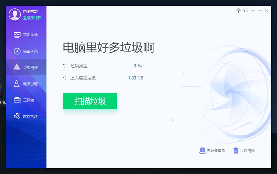 虽然腾讯电脑管家有类似的清理功能,但并不是所有的用户都安装有腾讯电脑管家这款软件,而且腾讯电脑管家的清理功能也比较弱,无法更加详细地对垃圾信息进行分类清除。所以如果用户想要更好地进行清理操作,还可以借助于一款第三方的小工具软件。