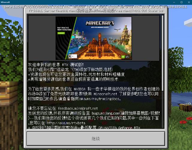 加入测试后,重新安装《我的世界》或升级,即可体验光线追踪版《我的世界》(版本号1.15.0.8)。当然,顺利体验的前提是你有一块支持光线追踪的NVIDIA GeForce RTX 20系列显卡,并且将驱动升级到了最新版本。