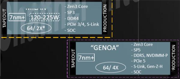 不过这张路线图中的Genoa处理器写的还是Zen3核心,工艺也是7nm+,并非现在的5nm Zen4,由此看来这个路线图实际上是早期,跟现在的设计并不相符。