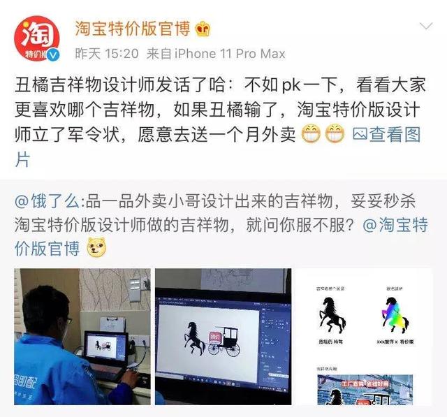 面对公然叫板,淘宝特价版设计师当然气不过,马上发起了投票,还给自己立下了军令状,输了就送外卖一个月。结果淘宝特价版还真输了,不知道设计师有没有兑现送外卖的承诺呢?
