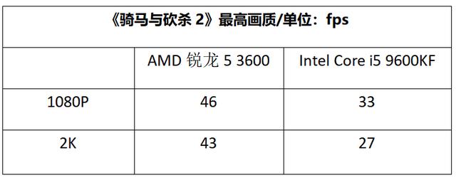 通过热门游戏的实战对比,我们可以发现,在主流3D游戏中,AMD锐龙5 3600和Intel Core i5 9600KF的帧速表现差别不大,但AMD锐龙5 3600的处理器占用率更低,拥有更多的线程数量供后台程序使用,可以在最大程度上避免后台程序与游戏进程抢资源而造成卡顿。而在《骑马与砍杀2》这类对处理器多线程性能要求很高的游戏中,6核心12线程的AMD锐龙5 3600相对6核心6线程的Intel Core i5 9600KF有近30%的帧速优势,我们知道未来的游戏对于多线程优化会越来越好,这就意味着AMD锐龙5 3600在游戏方面的优势也会越来越明显,这样的"增值型"选手,自然更值得选择。