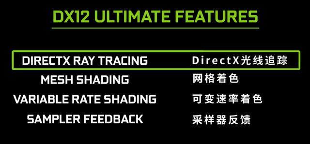 在前不久微软发布的DirectX 12 Ultimate中整合了一系列创新技术,其中包含了DirectX光线追踪、网格着色、可变速率着色和采样器反馈,其核心功能便是光线追踪,只有支持光线追踪技术的显卡才能支持未来的DirectX 12 Ultimate,而英伟达GeForce RTX 20系列显卡已经率先支持了这一系列未来技术,而你需要做的,仅仅是需要选择一款能战未来的RTX显卡。