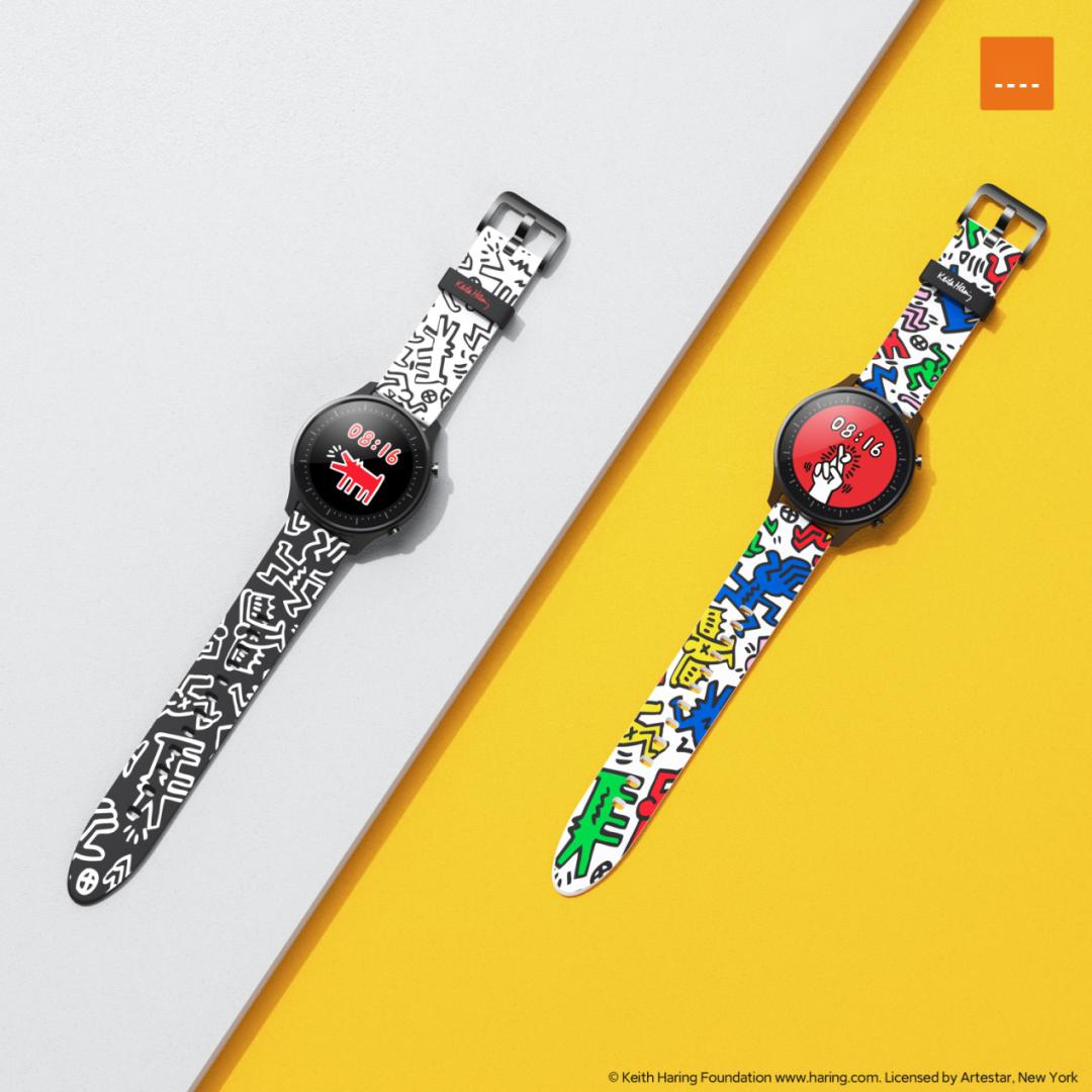小米手表Color Keith Haring联名版在设计上采用Keith Haring标志性的涂鸦设计,随表附赠黑白、彩色两款涂鸦表带,花样风格随心切换。内置11款Keith Haring定制主题表盘,将多彩的艺术涂鸦跃然腕上。整个手表设计极具视觉冲击力,将Keith Haring的潮流波普风体现的淋漓尽致。