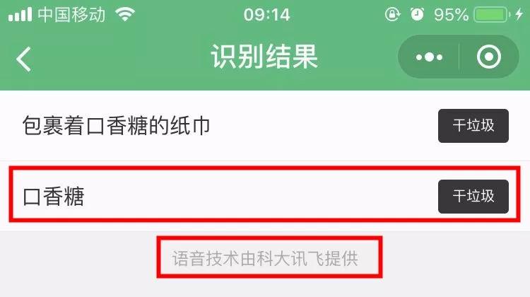 3、如果懒得拍照,可以直接点击“语音查询”,说出垃圾名称,(比如口香糖)就可以显示垃圾类别了。