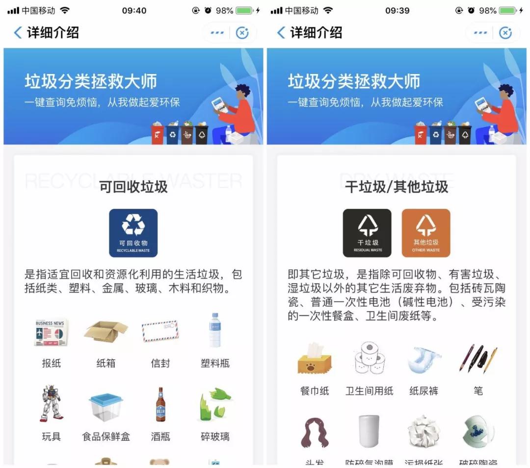 2、点击首页垃圾种类图标,也可以查看分类下具体包含哪些垃圾。
