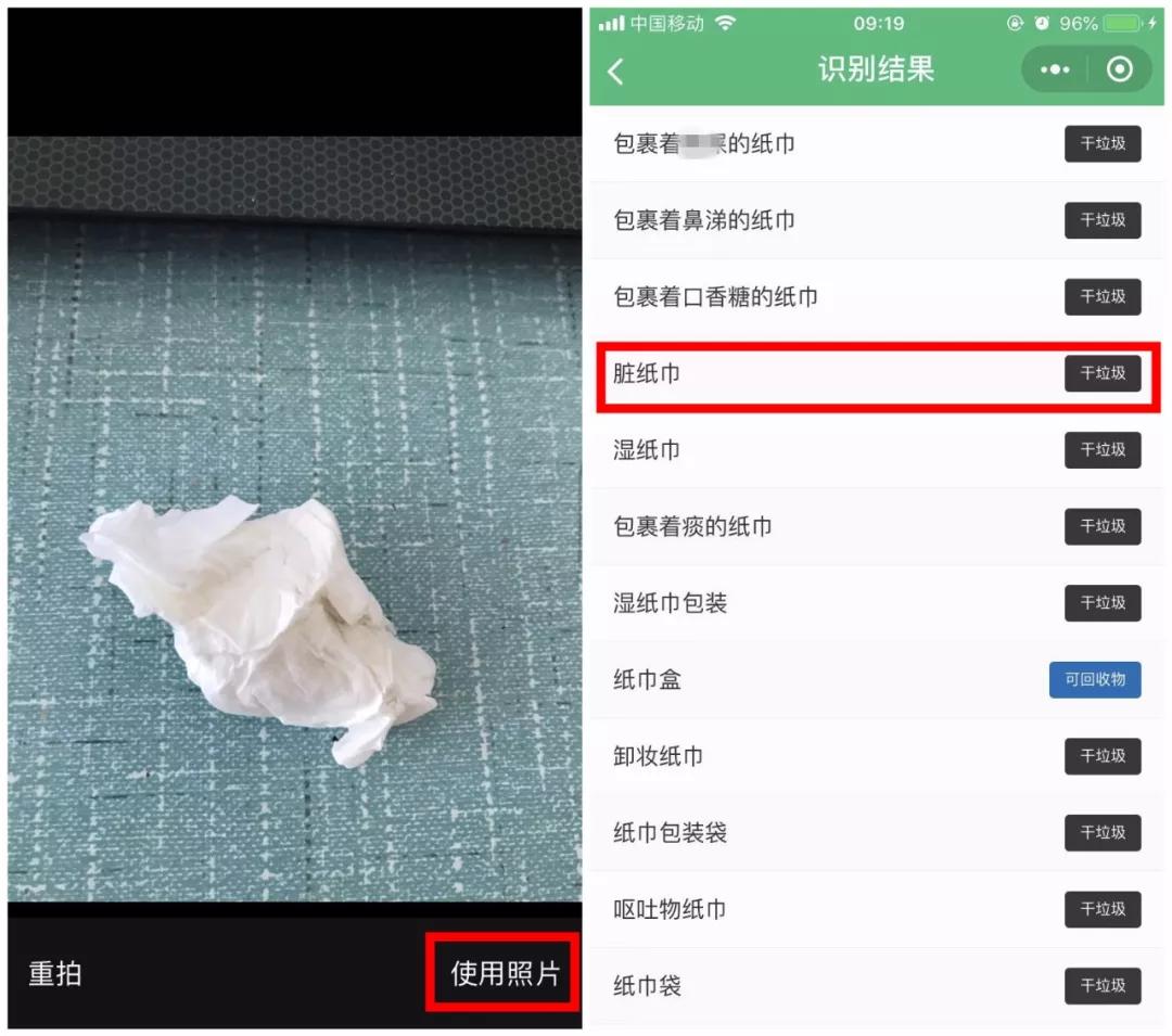 2、点击拍照,直接对着手边要扔的垃圾,然后就可以快速识别类别啦。