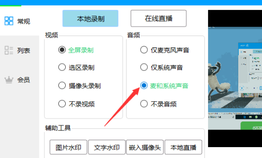 2.然后我们勾选"麦和系统声音"
