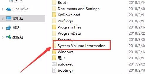 2、然后我们进入C盘,找到“System Volume Information”这个文件夹,系统还原点文件就保存在这个文件夹内。