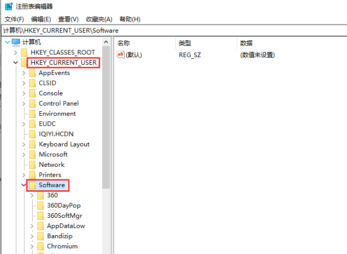 4,依次展开“HKEY_CURRENT_USERSoftware/software”,然后找到“office”文件夹将其删除掉即可。