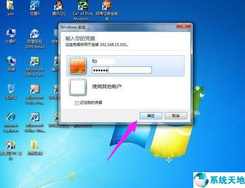 在新弹出的窗口中输入已经设定好的账户和密码,点击“确定”。