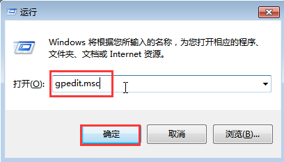 2、在对话框打开栏,输入“gpedit.msc”(注册表)回车,或者点击确定按钮