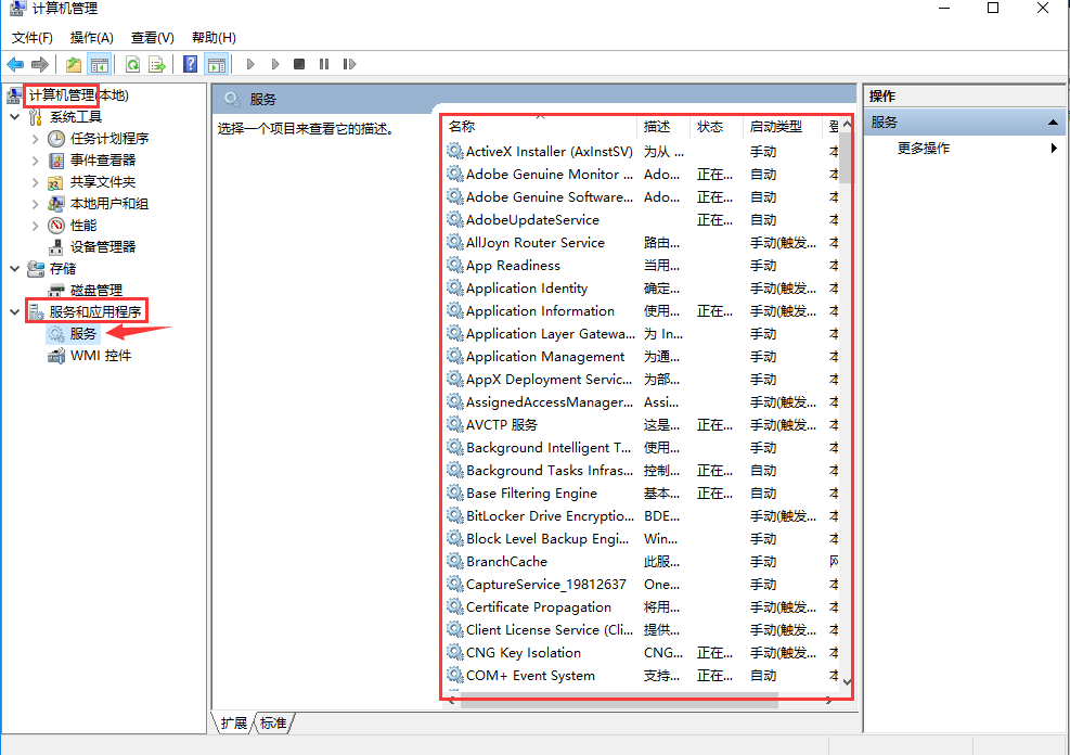 2、在左侧菜单中点击“服务”,右侧窗格找到“HomeGroup Listener”和“HomeGroup Provider”