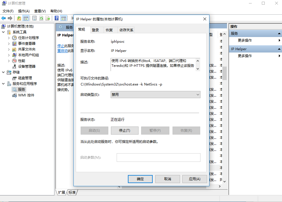 2、打开后,在左侧菜单栏点击“服务”,之后在右侧窗口中找到“IPHelper”
