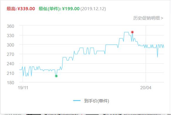 从这款产品的价格走势图上,我们可以看到这款固态硬盘从3月中旬开始,价格持续回落。一直到现阶段,价格最低回落到259元。
