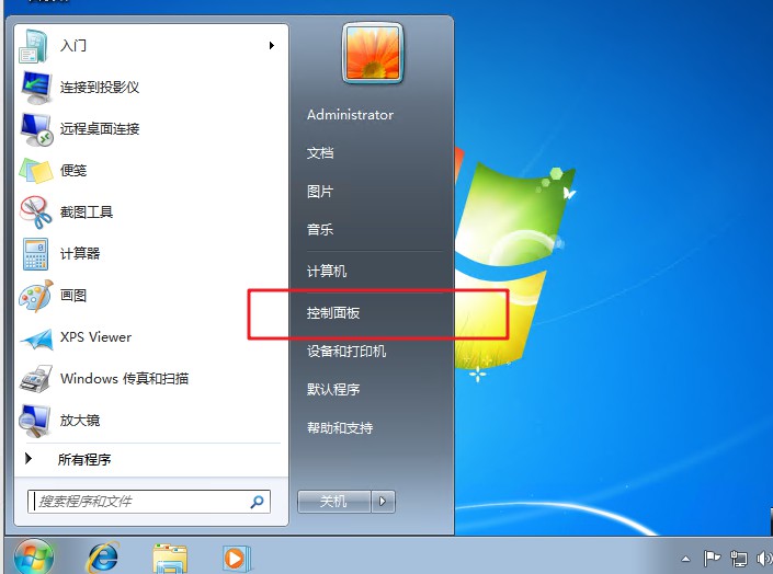 1、 点击打开windows图标,选择“控制面板”