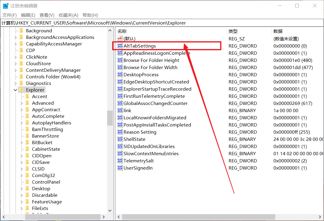 4、 然后,在右侧页面找到并双击打开“AltTabSettings”,如图所示