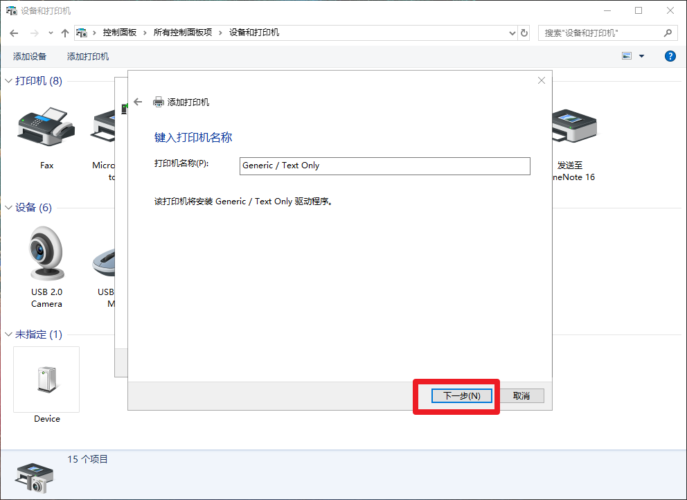 7、选择左侧的Generic,然后在右侧选择Generic/Text Only,点击“下一步/下一步/下一步/完成”,如图所示