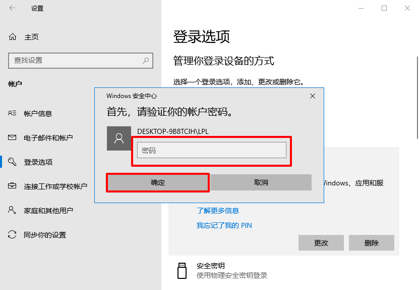 4、此时,会弹出密码验证选项,输入开机密码进行验证,点击“确定”