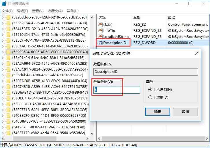 【HKEY_CLASSES_ROOT\Wow6432Node\CLSID\{5399E694-6CE5-4D6C-8FCE-1D8870FDCBA0}】,新建DWORD(32位)值,命名为【DescriptionID】,双击打开并将数值数据设置为【3】