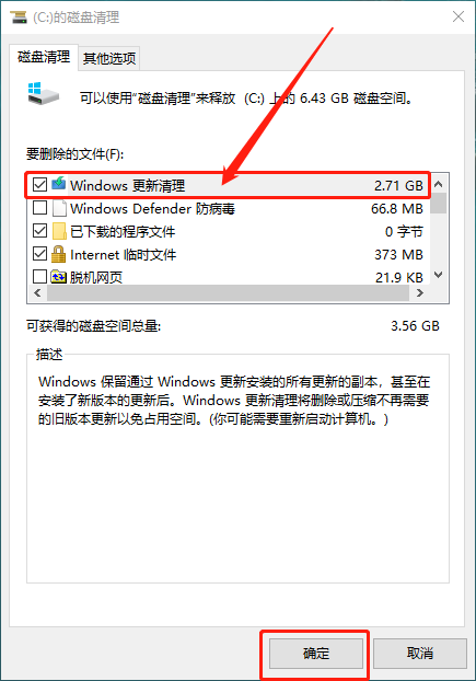 4、等待系统搜索好之后,即可看到“Windows 更新清理”选项,直接进行勾选并点击“确定”