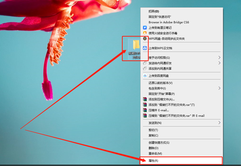 第四步:右键出现假死状态的文件夹,选择“属性”