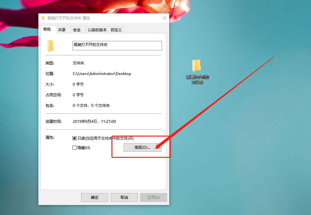 第五步:在属性页面中,点击“高级”