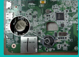 3.在计算机主板上找到纽扣大小的组件,它是BIOS电池。