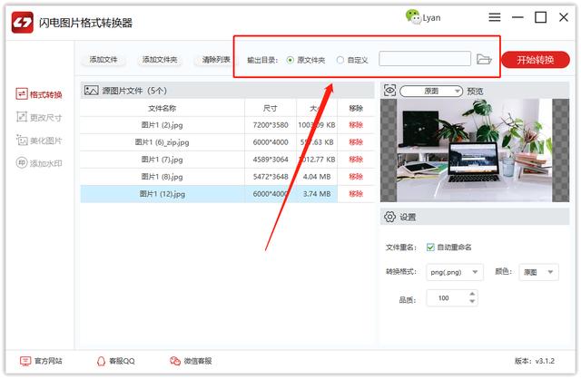 第四步、默认的文件保存位置是原文件夹,勾选“自定义”按钮可修改。
