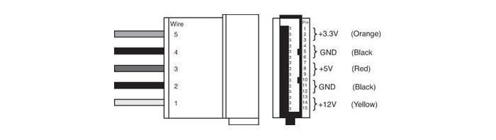 首先我们来说接口,电源引出的接口有一种最常见的就是SATA硬盘供电线,SATA硬盘供电线提供12V、5V、3.3V的输出,因为在3.5寸机械硬盘上需要使用12V的直流电来驱动电机运动,而5V则是给主控供电。3.3V的供电在老式硬盘上可能还有用途,但是新式的机械硬盘多数已经自带5V转3.3V的变压电路。固态硬盘也是同理,因为自带5V降压电路,所以3.3V几乎不会被用上了。