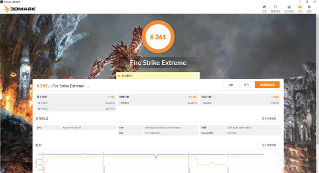 来到实际测试环节,我们通过3DMark可以看到RX5500XT的具体表现,在FireStrike Extreme以及3DMark TimeSpy这两项测试中分别取到了6261和4792的成绩,比上一点AMD RX580高了大约10%的性能,跟NVIDIA GTX1660相比也互有胜负。
