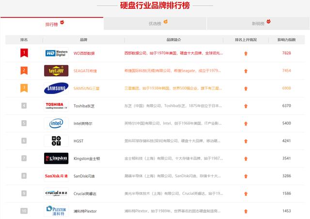 我们来看一下中国品牌网给的硬盘TOP10排行榜(以影响力指数为标准)