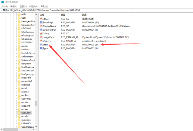 步骤五、找到start项,双击查看选项的值。如果值为4,将该项值调为3即可。