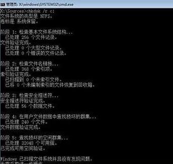 6、接着输入chkdsk /r C :命令,按回车执行,自动检查系统文件错误;