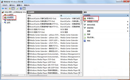 3、我们点击左边的出站规则新建一个出站规则。