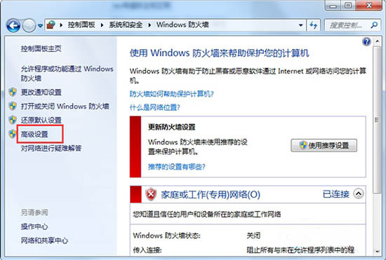 2、我们点击左边的高级设置就会出现高级安全windows防火墙设置。
