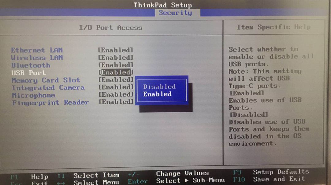 如果鼠标和其他USB外设也不能使用,说明在BIOS中禁用了USB端口,可以尝试恢复BIOS默认值,或者修改BIOS中相关选项。各机型设置会存在差异,以ThinkPad E490为例。