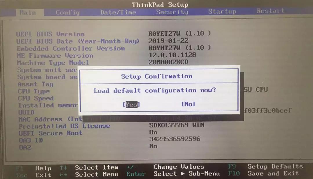 2、选择【Yes】-按F10保存设置并重启。