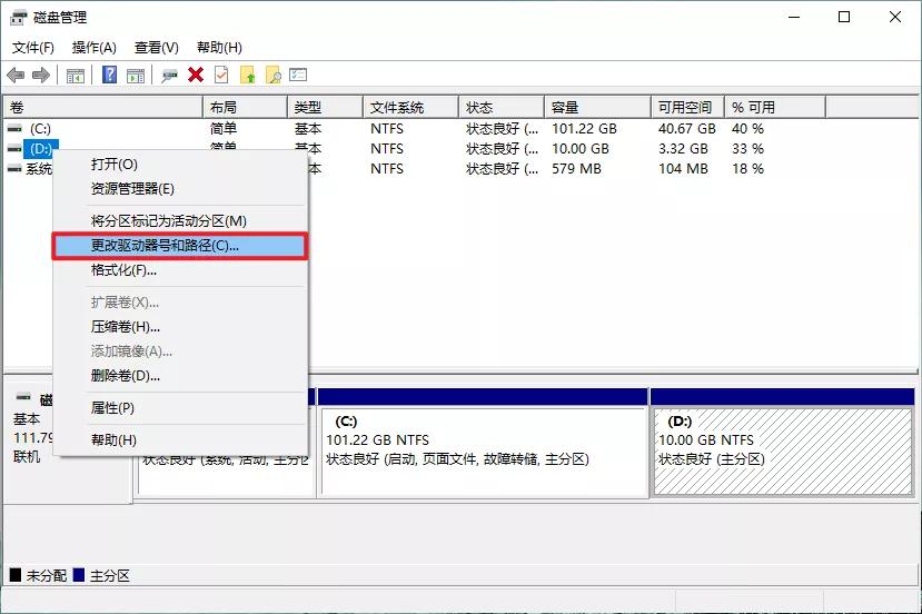 如果想要隐藏整个磁盘或分区,除了拔下整个硬盘外,也可以在「磁盘管理」中右键需要隐藏的分区,更改驱动器号和路径 – 删除驱动器号。