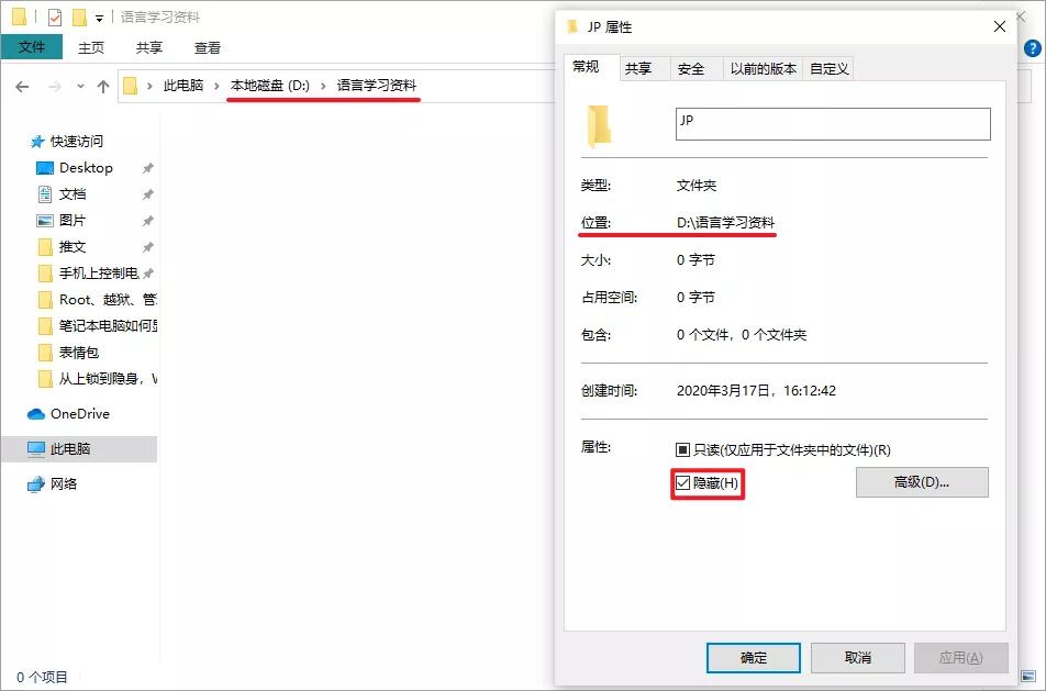 由浅入深,先来介绍 3 种 Windows 系统中自带的隐私保护功能。最简单的方式当然就是文件属性中的「隐藏」,右键文件夹、文件点击「属性」,勾选「隐藏」,文件将会消失,想要显示文件夹,