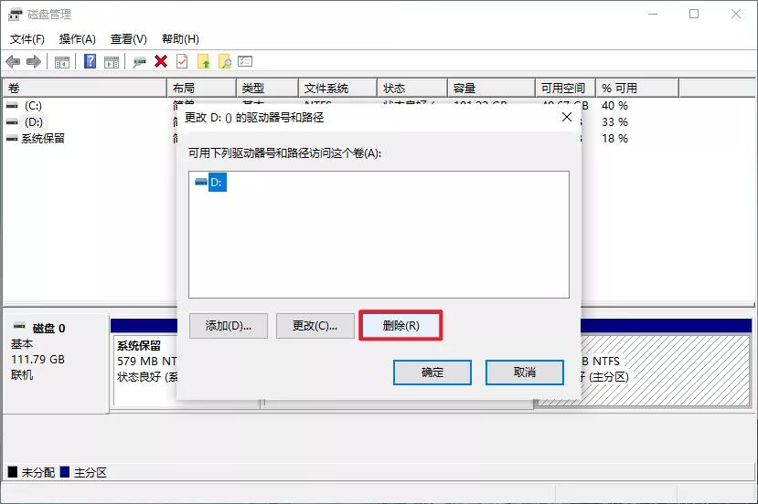 需要注意,删除驱动器号后,安装在这个分区的软件将无法运行。