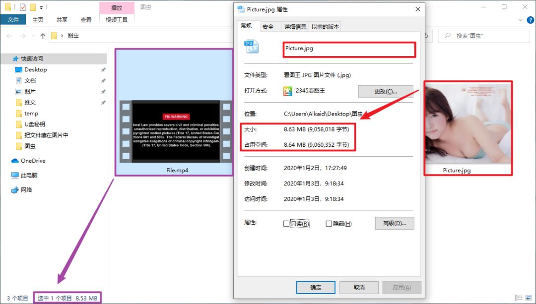 将隐私文件隐藏到图片中叫作图种,是一门古老的技艺,可以将图片文件和压缩文件合并起来,正常打开看到的只是图片,修改扩展名为压缩文件格式后解压,才能得到隐藏的文件。将需要隐藏的文件和图片放到同一个文件夹