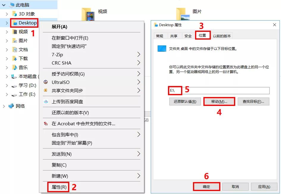 双击桌面上的【此电脑】,右击【Desktop】,依次选择【属性】【位置】【移动】【选择文件夹】后【确定】。