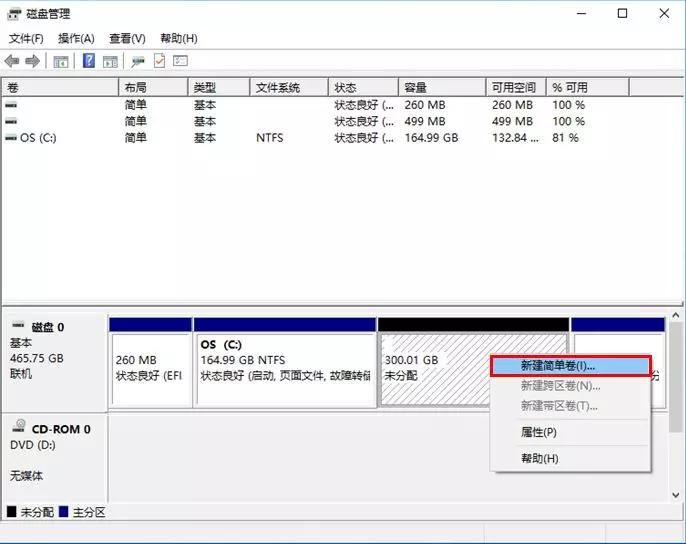 如果要分区,右击开始菜单,进入【磁盘管理】,右击磁盘选择【压缩卷】, 输入压缩空间量后【压缩】,右击此分区选择【新建简单卷】,输入简单卷大小后【下一步】并按提示完成即可。