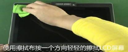 3. 使用擦屏布沿同一方向清洁屏幕,可从左至右,从上至下清洁。